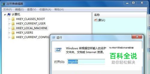 在【开始】→【运行】中输入: regedit 按回车键之后,打开注册表编辑器。