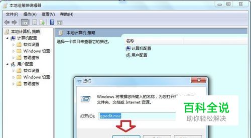 开始→运行→输入: gpedit.msc 回车打开组策略编辑器。