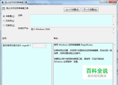 注册表编辑器被管理员禁用,通常是不良程序捣的鬼。通常是在组策略中查看是否有禁用注册表编辑器的策略在起作用?如有,禁用即可。