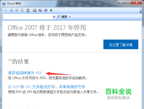 点击打开【查找其他文件格式的加载项】,进入帮助窗口,打开【保存或将转换为PDF】