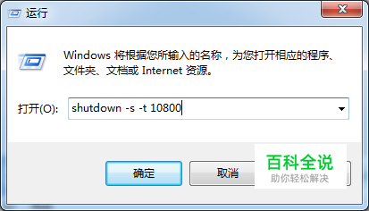 我们想让电脑在3个小时以后关机,就打开开始菜单,打开运行框,在运行框中输入shutdown -s -t 10800 然后确定就可以了。10800就是3个小时的秒数,因为系统记忆关机时间是以秒计算的。