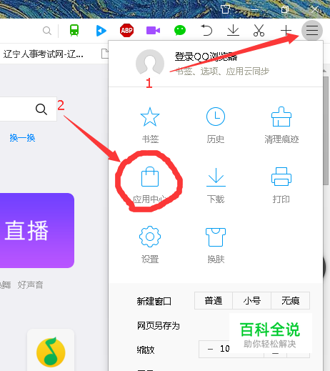 打开QQ浏览器,在右上角的菜单中,找到应用中心 ,单击打开应用中心。