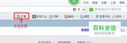 打开360安全浏览器,然后在菜单栏内找到“扩展”按钮单击。