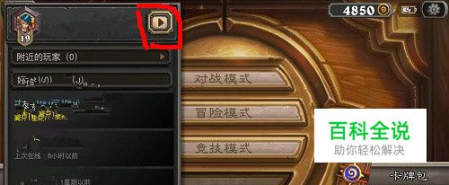 进入炉石,稍后片刻,点击左上角标记处,如下;
