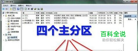 8、点击完成。 一般来说,系统会自动分配四个主分区即两个隐藏分区,一个C盘和一个D盘,四个主分区建立后旧无法再创建其他分区,这也是为什么win7分区时提示不支持动态磁盘的原因。