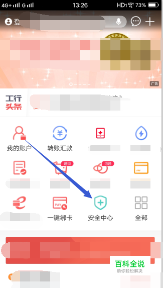 首先打开工商银行手机银行客户端,登录自己的账号后显示到首页,点击首页中的安全中心模块。
