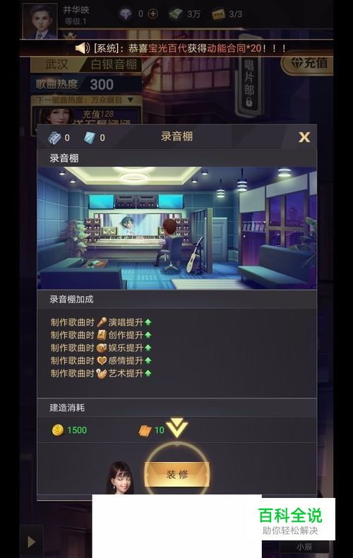 先签约歌手,然后建设录音棚,再升级录音棚可以提升歌曲质量,质量越高销量越高,如图所示