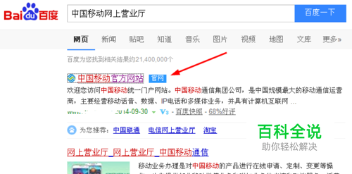 电脑搜索中国移动网上营业厅。