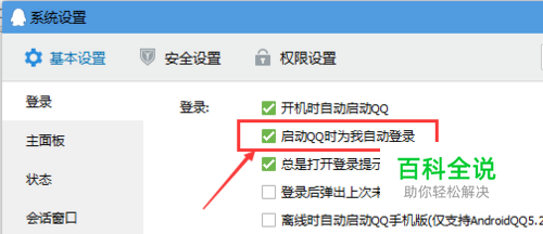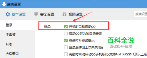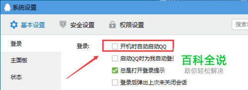 在系统设置界面,我们可以在登录那里看到有个开机时自动启动QQ,如下图所示。