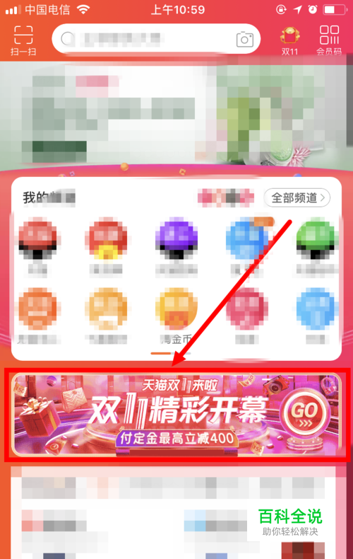 首先在手机上打开并登录淘宝App,然后在首页面就可以看到 双十一 的广告栏。点击 广告栏 。