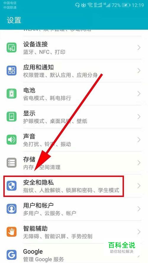 找到“安全与隐私”,打开它