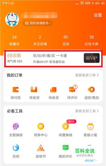 进入我的淘宝界面后在顶部可以看到【88VIP】的显眼字样,点击这个选项。