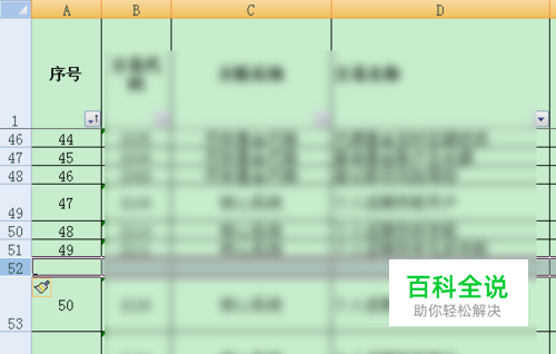 现在我们想在第50行前面新增一行,右键新增之后如下,为了保持序号连续,需要更改序号。