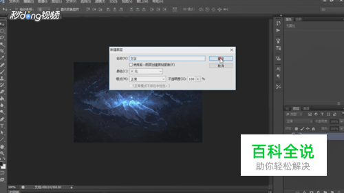 接着点击“图层”,点击“新建”,点击“图层”,在出现的弹窗中命名为“文字”,再点击确定。