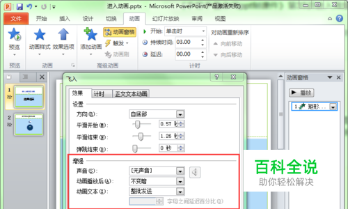 《手把手教你用ppt制课件》第33讲动画效果设置。这里主要给大家讲讲如何给进入动画添加声音,进入动画播放后的效果设置等。