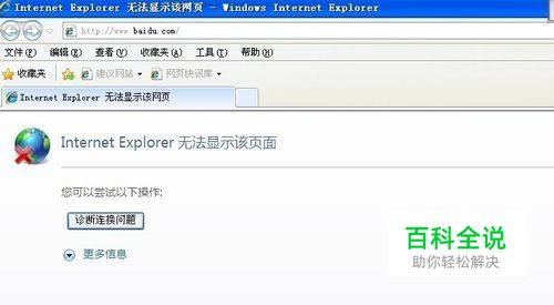 首先我们可以看到由于虚拟机无法上网,所以在打开IE浏览器后提示“Internet Explorer 无法显示该页面”,也就是所说的不能上网了。