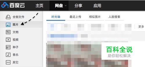 打开并登录自己的百度云以后,点击左侧的 “图片”栏目,如图所示