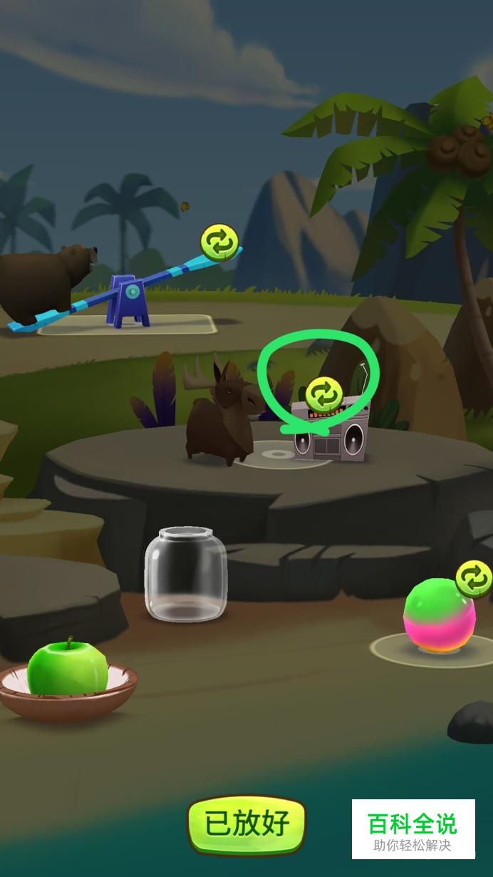 点击海滨处的篮子,然后选择食物添加进去;接着点击海滨处球的图标,就会看到很多玩具,点击想要添加的玩具添加就行啦。