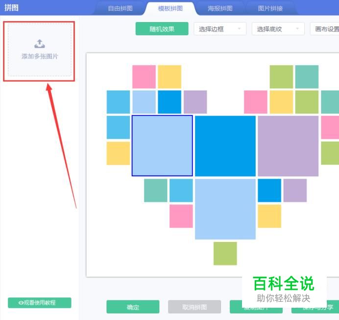 接着在模板拼图的右边处,选择爱心模板的形状,在模板拼图的中图间处可预览模板形状的效果。