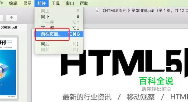 如果我们要直接跳到第五页开始阅读,可以这样操作。 点击系统菜单栏上的‘前往’,在弹出下拉后,点击‘前往页面’。