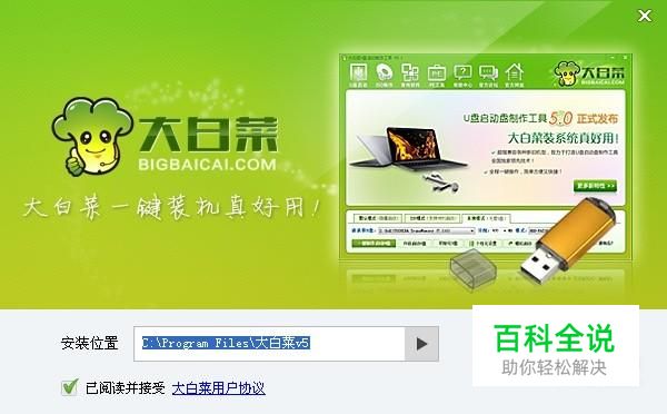 进入大白菜pe界面后,会自动弹出“大白菜PE装机工具”,若是没有弹出或不小心关闭则点击左侧“大白菜pe装机工具”图标。在大白菜pe装机工具中,系统会自动识别相关的系统安装包,我们在下拉菜单中选择ghost win10系统安装包,接着选择系统盘,点击“确定”。
