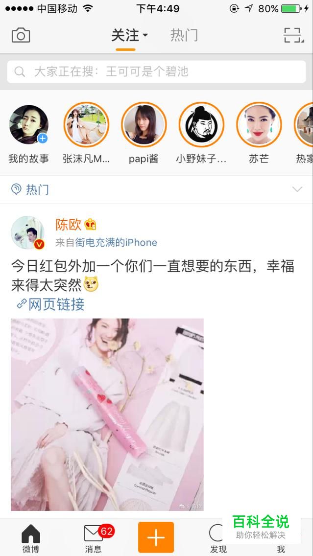 在手机上打开新浪微博app进入主界面
