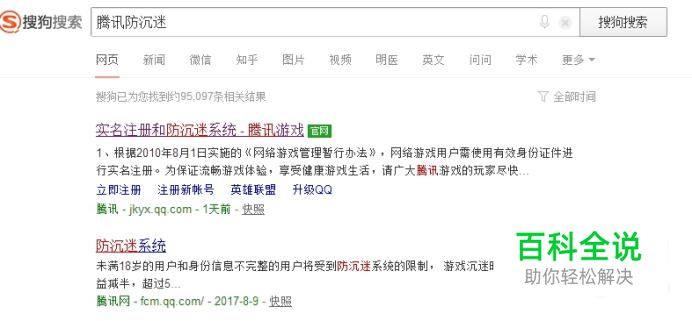 打开搜狗搜索,输入腾讯防沉迷关键字。点击搜索并查看结果。
