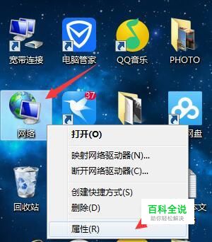 在电脑桌面处,鼠标右键点击“网络”,接着打开“属性”。
