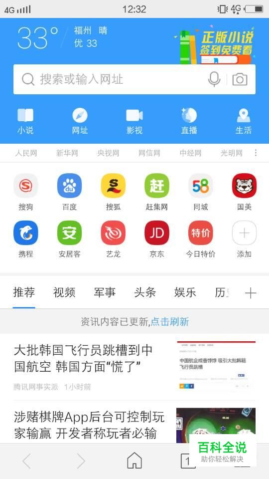 打开浏览器 找到手机上的搜狗浏览器放置位置并打开。进入到搜狗浏览器的主页面。