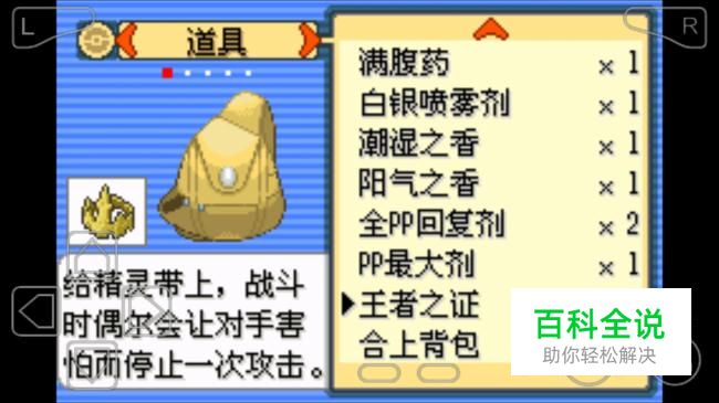 王者之证是口袋妖怪漆黑的魅影里中的一种道具,带上之后有一定几率让对手因为害怕而不敢出招,怎么获得王者之证呢?