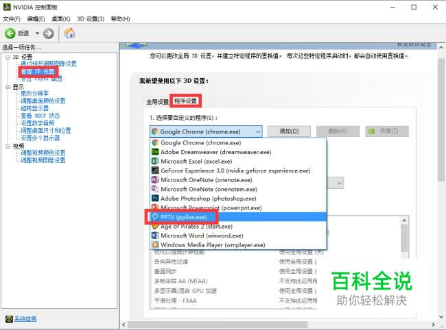 在弹出页面的左侧选择“管理3D设置”