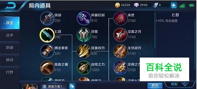 出门装:匕首 在出门前, 我们选择匕首作为狄仁杰的出门装,因为它可以增加英雄10%的攻击速度。