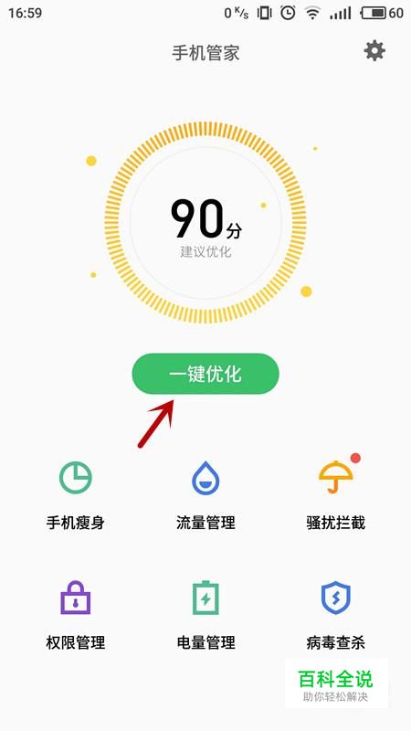 进入手机管家界面,选择“一键优化”