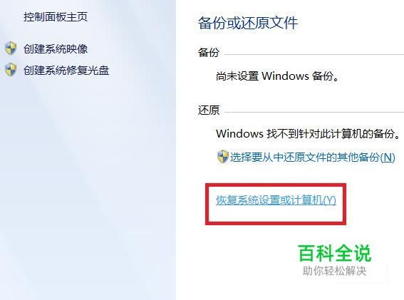 选择“恢复系统设置或计算机”。