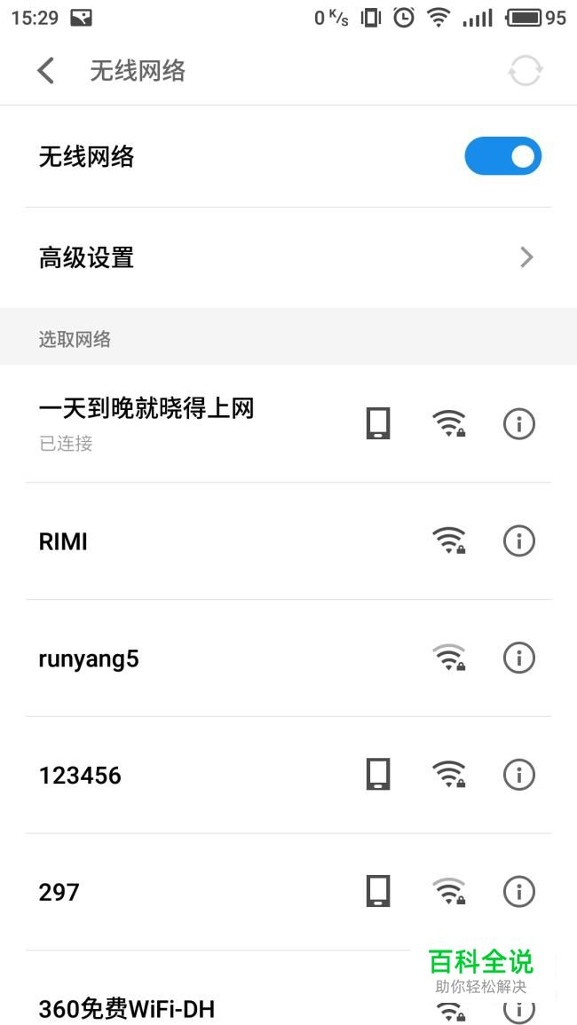 进入手机设置无线网络界面,点击想要查看密码的WIFI。