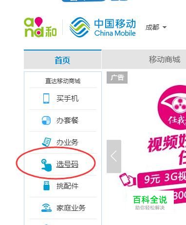然后在官网的左侧列表点击“选号码”。