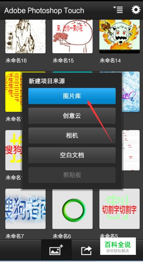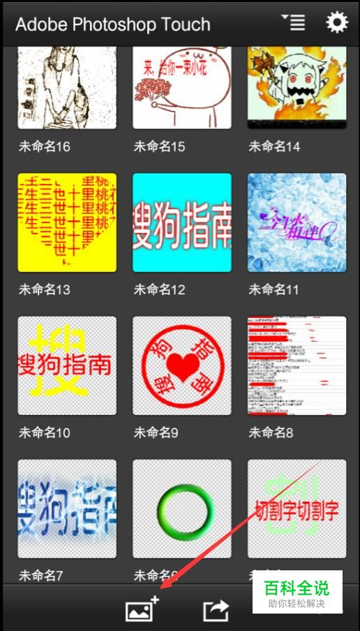 打开PS Touch这个app之后,可以看到下方有一个图片的标志,我们点击一下。
