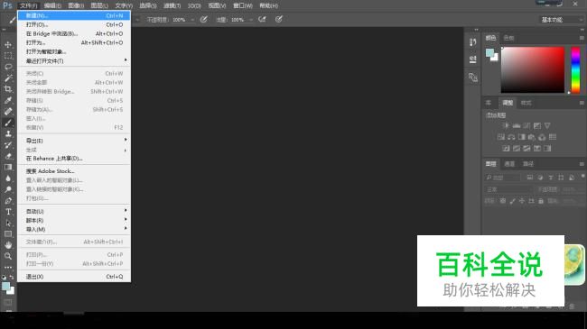 进入PS界面以后,在顶部找到文件这个选项,新建一个图层,接下来小编将在这个图层向大家演示怎么画虚线框。