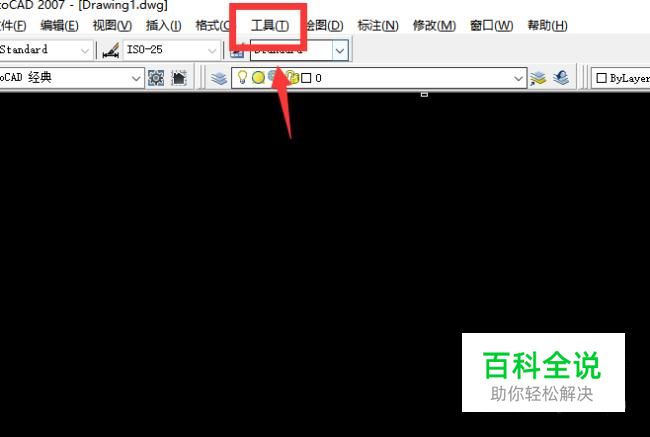打开电脑中的CAD软件。先将CAD设置成经典模式,点击界面上方的工具。