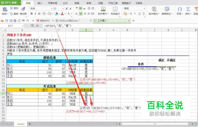 所认这个公式=IF(OR(B17>=80,C17>=80),"优","差")与公式 IF(D17,"优","差")是一样的,我建议的就是大家在没有熟悉公式之前还是一步步写出来要好一点的,熟悉了再找简单的方法进行做都可以的,公式都是灵活的要会套。