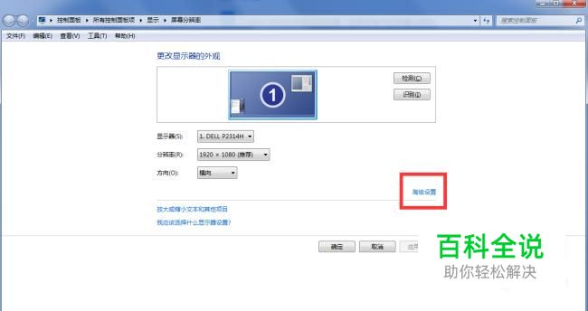 在弹出的分辨率窗口中选择高级设置。