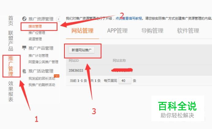 登录进账户之后我们要做的第一步就是先添加自己的推广网址,大家可以图的顺序依次操作,填入你的网站名称,网站类型,网址,和备案信息(香港服务器可以直接填写“香港服务器”)