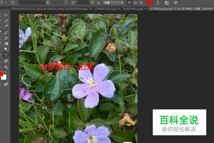 在电脑屏幕的左边找到一个T字型的标志对准它单击鼠标左键,然后再回到图片上随便找个位子单击左键,会显示出可以编辑的竖杠,编辑你想要文字就可以了。比如“沐沐每日一拍集”如下图显示的那样。