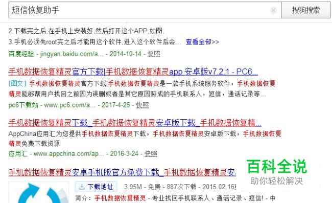 首先需要在手机上下载一个短信恢复助手,比如搜狗搜索引擎上搜素短信助手。