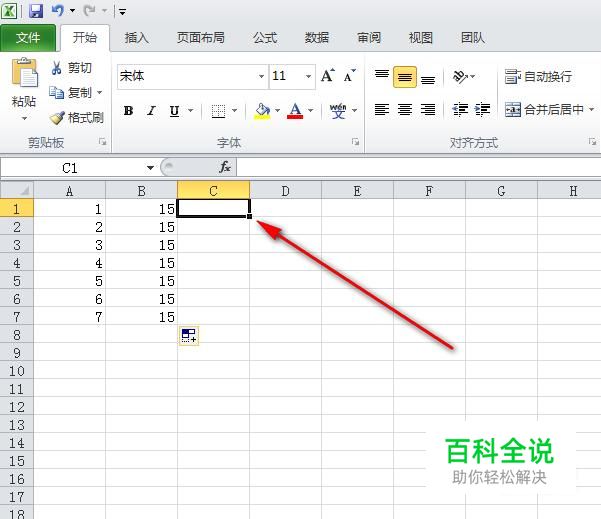 接着我们把单元格定位在C1单元格。