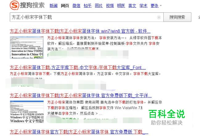 首先打开搜狗浏览器,在搜索页输入:方正小标宋字体下载。然后点击进入字体网站。