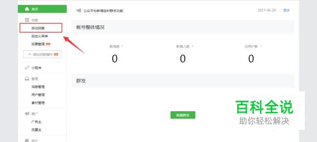 点击进入左边选项框功能中的“自动回复”。