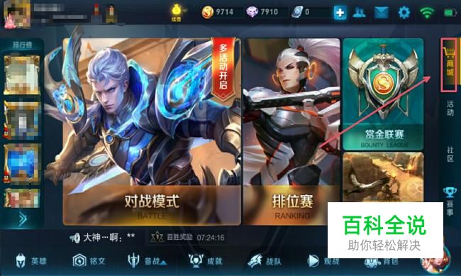 下载安装王者荣耀,打开王者荣耀登陆以后会看见页面上有“商店”,点击进入商店。