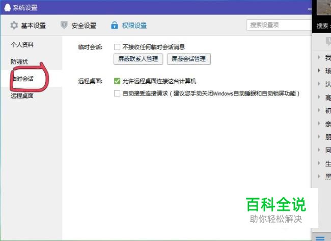 进入权限设置栏后,点击-临时会话。