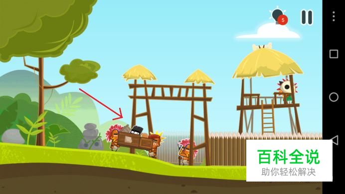 拿到箱子里面的肉,然后爬上楼梯将上面的原始人推下来。